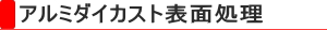サンドブラスト加工 ヘアーライン加工 バフ加工 酸洗い処理加工 科学梨地処理加工 光沢梨地処理加工 陽極酸化処理加工 ※通常素材色アルマイト処理加工 ※着色アルマイト処理加工 染色アルマイト処理加工こちらの処理はプロジェクターTVの部品としてパイオニア、三菱電機、東芝、松下電器等に納品させて頂いており業界NO1クラスの品質を実現しております。 (順不同) パールコート #3762:#3700 アルサーフ315 等の処理液でお客様の応じた対応を致しております。 AZ31材:AZ91材の二種類のみ加工。 通信、パソコン、携帯電話等の部品に使われています。 チタン発色処理 三菱電機(株)京都製作所 日本電気(株) (株)東芝 サンアローモバイルデバイス(株) 三井金属鉱業(株) ポリマーテック(株) 東洋通信機(株) (株)八代電機 オンキョー(株) 大成プラス(株) パイオニア(株) (株)サンテック ソニー(株) パナソニックモバイルコミュニケーソンズ(株) 横川プレジション(株) (株)TKR (株)古河アルフレックス (株)新鋭産業 相洋産業(株) (株)ミツトヨ (株)双立 筑波ダイカスト(株) ダイコエレクトロニクスアンプ(株) (株)葵精機 (株)伸原工業所 (株)マルサンネーム 三栄工業(株) (株)吉光工業 日立電線(株) その他多数 順不同